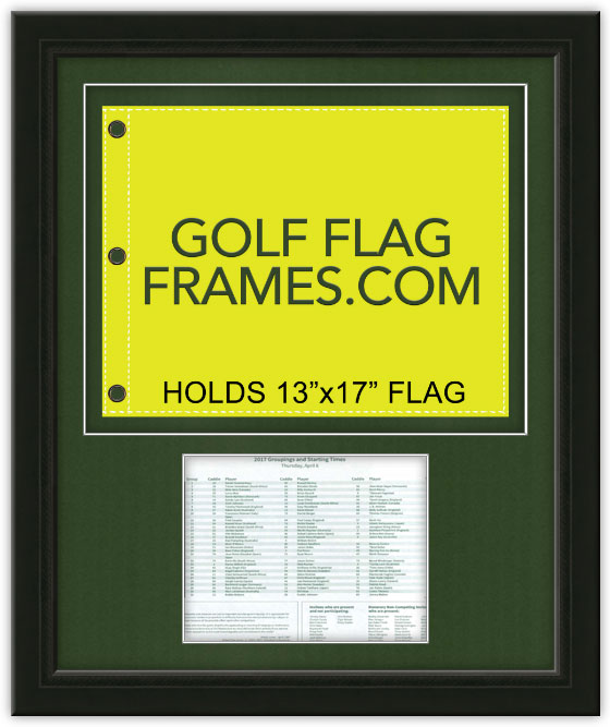 CUSTOM FOR VICTORIA LONG 22X27 Black Frame to Hold Masters Flag and 8.5×11 Pairing Sheet (Moulding blk-002, Fairway Green Mat)
