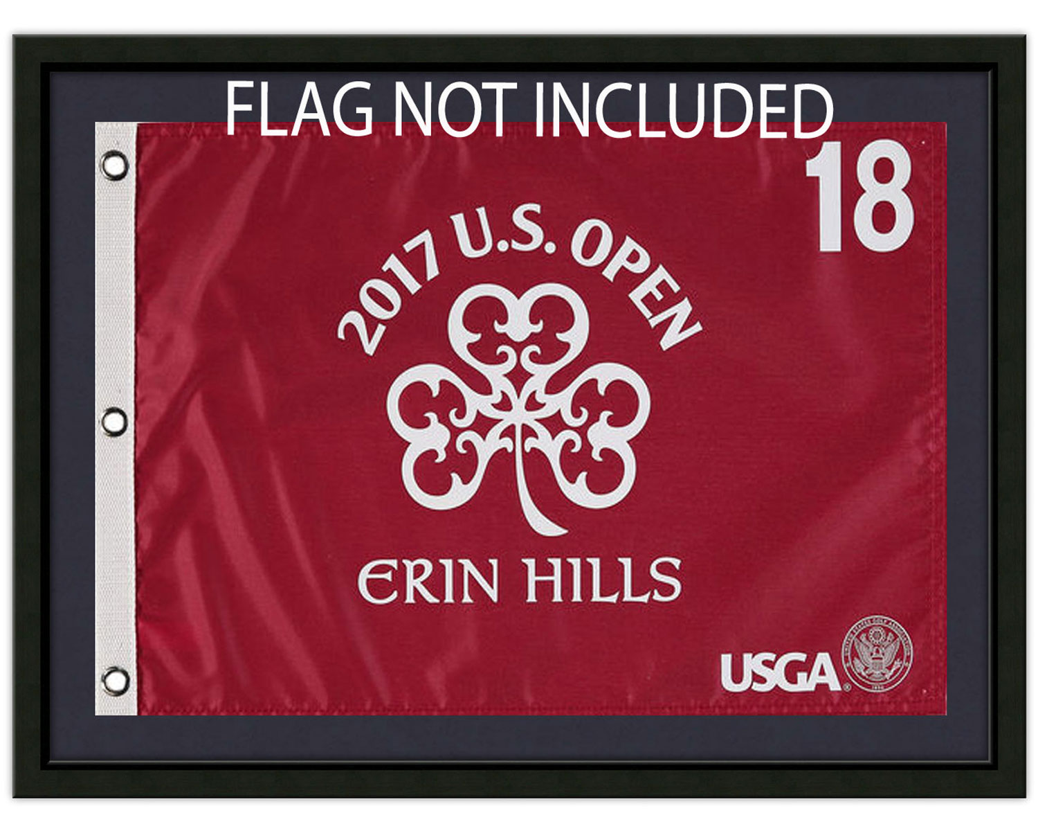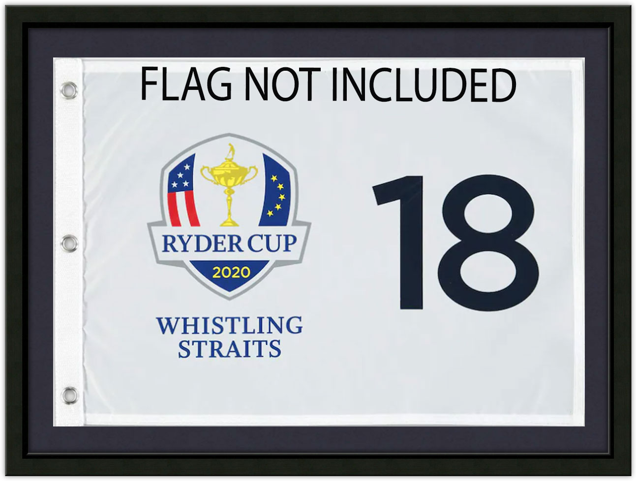 US Open Flag Frame; Holds Souvenir US Open, PGA Championship or Ryder Cup Golf Flag (Black Moulding blk-001, True Navy Mat)